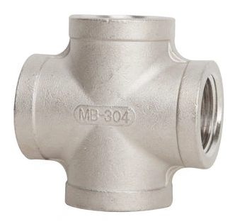 ANSI B16.14 Threaded Cross Supplier: Galvanized SS 304 Threaded Cross, 3/8 Inch, Class 150 LB, FNPT, ASTM A197, ANSI B16.3, ANSI B16.14.